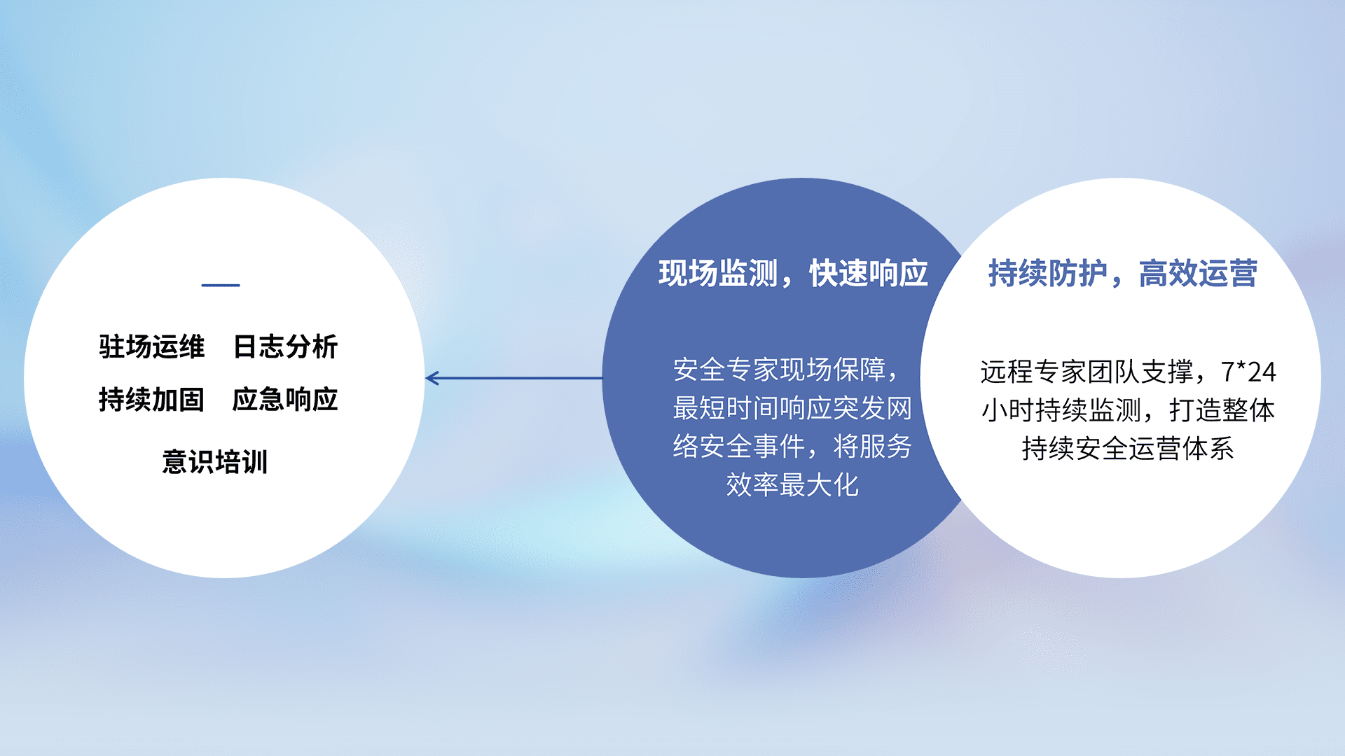 针对客户行业特性,,提供专属的一站式安全管理服务,,,,帮助客户全面感知网络空间威胁,,,,通过安全专家的线上、、线下防护支持,,实现风险闭环,,,,将安全保障常态化,,,,为客户打造常态化安全运维运营服务。。